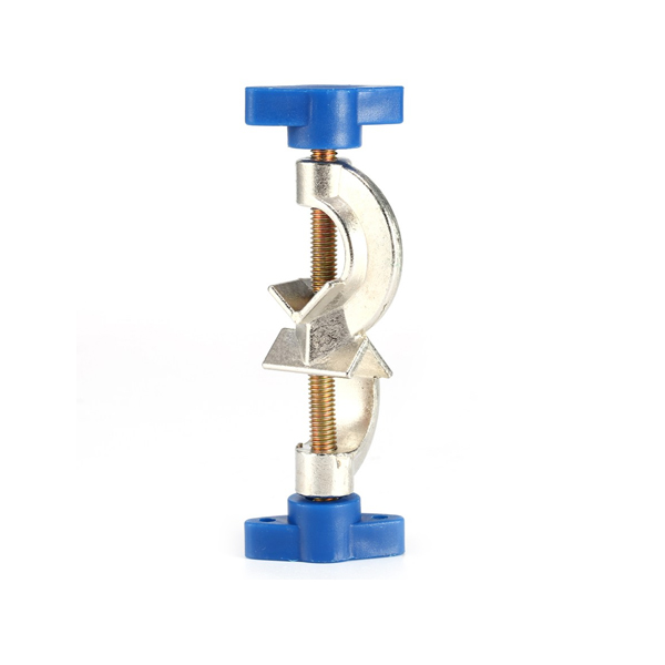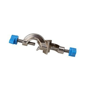 For use with laboratory stand, diecasted alloy, accepts rods upto 16.5 mm. diameter at right angle to each other. With blue plastic headed screws.