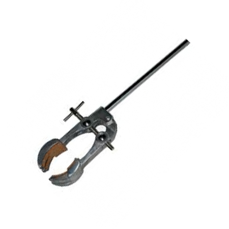 For beaker upto 5 ltr. casted alloy with other plated parts, with covered jaws, opening up to 8cms. The horizontal rod is offset so that large vessels are secured in line with the axis of the vertical support rod.