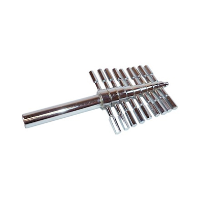 Nickel-plated finish. Complete with cleaning rod. Set of 6 Sizes 4 -10 mm. Set of 12 Sizes 4- 18 mm.
