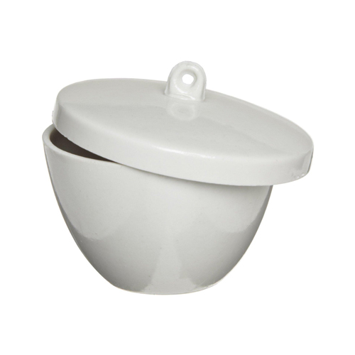 Porcelain, squat, glazed inside and outside except base, with lid.