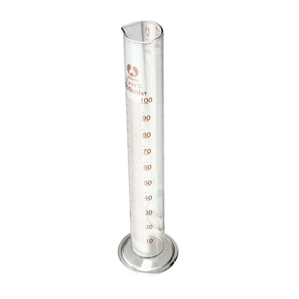 Plastic. Hexagonal shape to prevent an overturned cylinder from rolling off the bench. Suitable for cylinder capacity upto 250 ml.