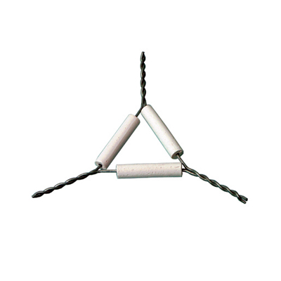CLAY PIPE TRIANGLE: Clay pipe, on thick iron wire. Size: 5 cms, 6 cms, 7.5 cms.