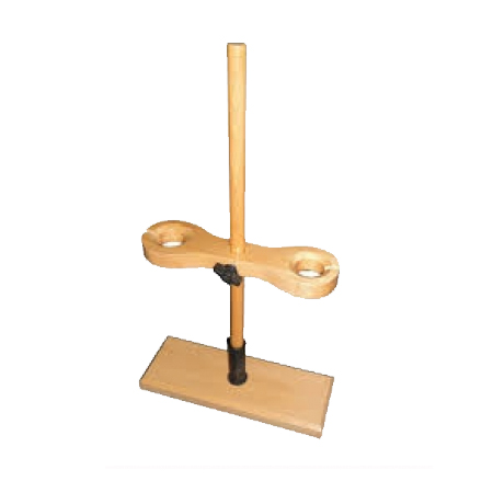 Made of seasoned hardwood, polished, with clamping screws. Rods are approx. 460 x 16 mm. Single base size 200 x 100 mm. Double base size 290 x 110 mm. Burette Stand, Single Burette Stand, Double.