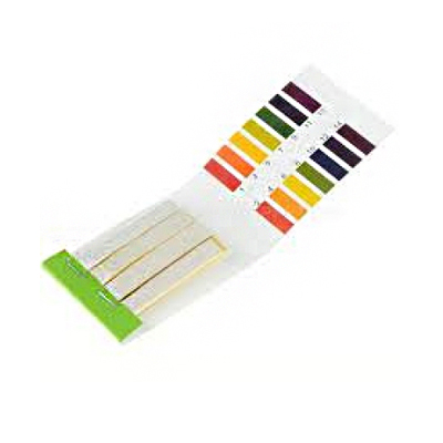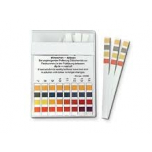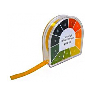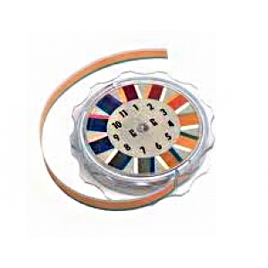 Indicator paper supplied in plastic dispenser containing 5 meters of 8 mm. wide test strip. A colour chart is provided on the side of each dispenser.