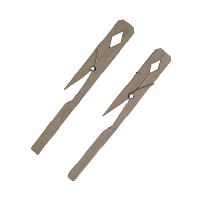 Strong spring clip, with strip of metal in wooden handle accepts tubes 15-25 mm. Steel/ Brass.