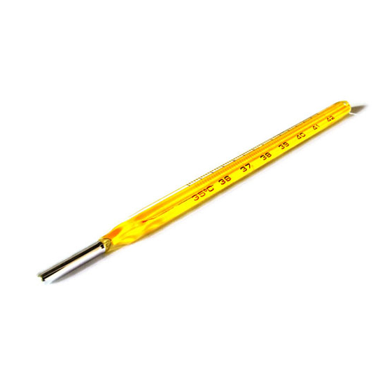Mercury in glass, with white enamelled back and reinforced bulbs. General purpose stirring thermometers. Supplied with non- roll fitting. Diameter 6.5 mm. approx. and 76 mm. Immersion. Graduated and supplied in case.