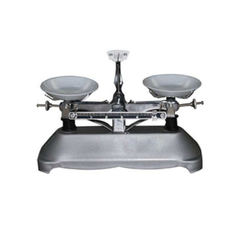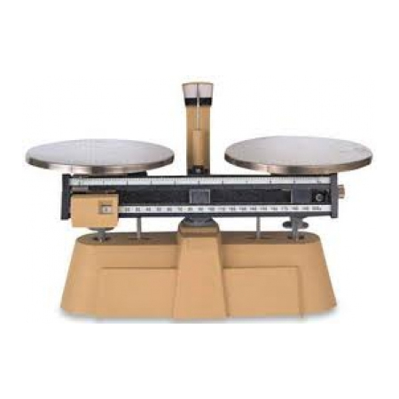 Two pan balance for accurate and rapid weighing up to 2 Kg. when used with supplementary masses. The balance has a cast alloy base and featured angled beam with center reading poises, magnetic damping, spring loaded zero adjust compensator, precision ground knives and cross braced aluminum alloy beam.