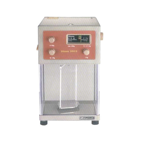 Balances single pan balance, capacity 311gm. x 10 mg. with FOUR BEAMS each provided with a non-removable slider and graduated 0 to 200 x 100gm., 0 to 100 x 10gm., 0 to 10 x 1gm. and 0 to 1gm. x 10 mg. respectively. Additional masses are not required. With zero adjustment and stainless steel pan 90 mm. diameter with two pouring spouts and handle. Height of stirrup 175 mm. Magnetically damped beam m.